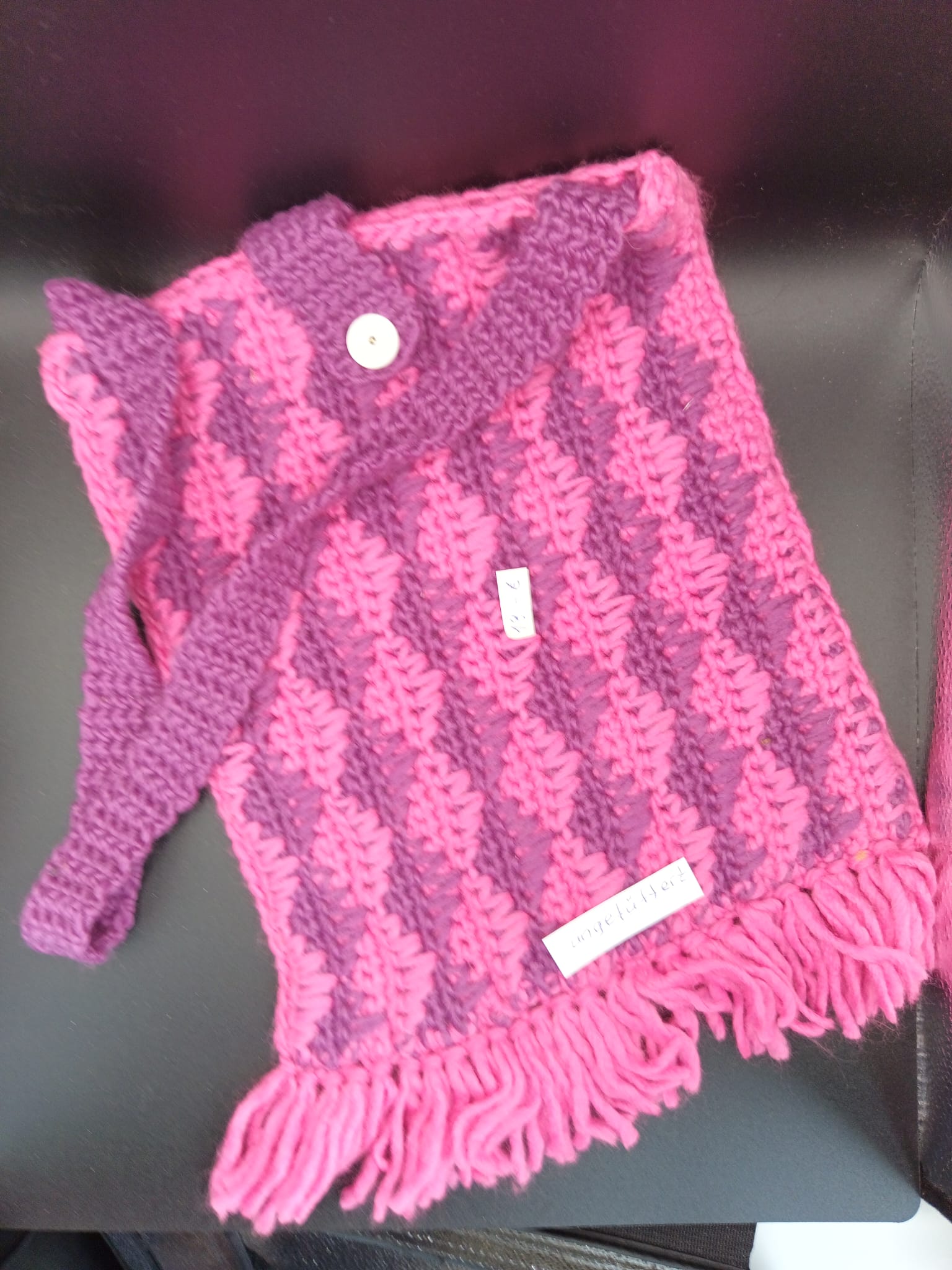 Farben: Fuchsia-Pink, Dunkelviolett Technik: Handgehäkelt Ideal für: Als Hingucker im Alltag oder für den nächsten Ausflug.