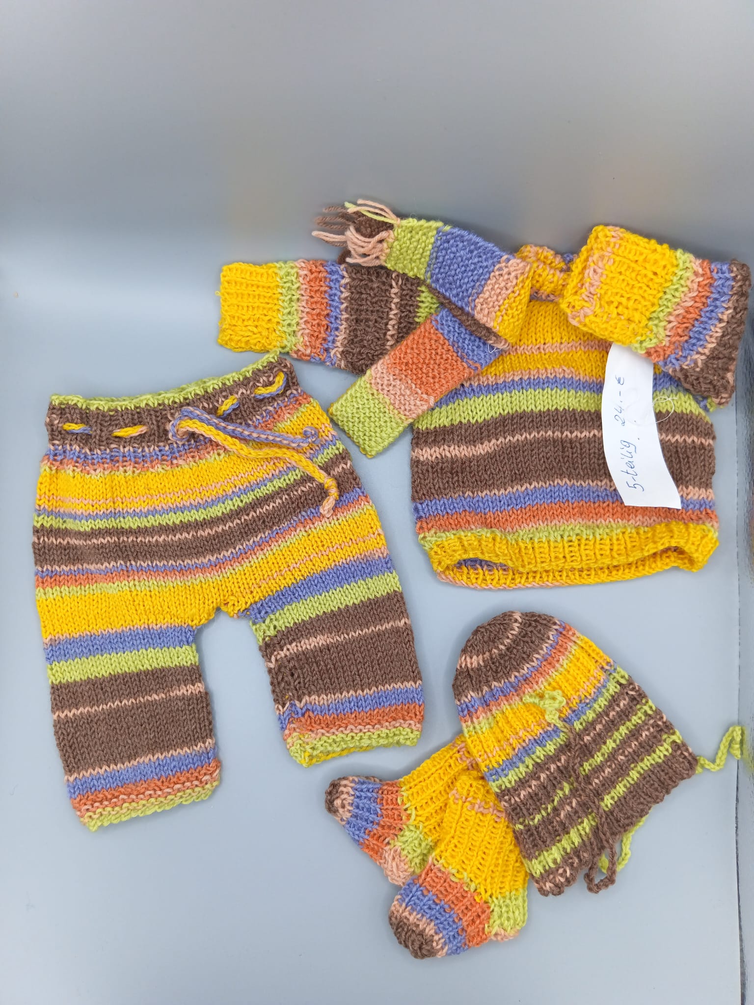 Schreibe die erste Rezension für „Handgestricktes Puppen-Strickset 25 – 30cm – 5-teilig bunt mit Pullover, Hose, Mütze, Schal & Söckchen“