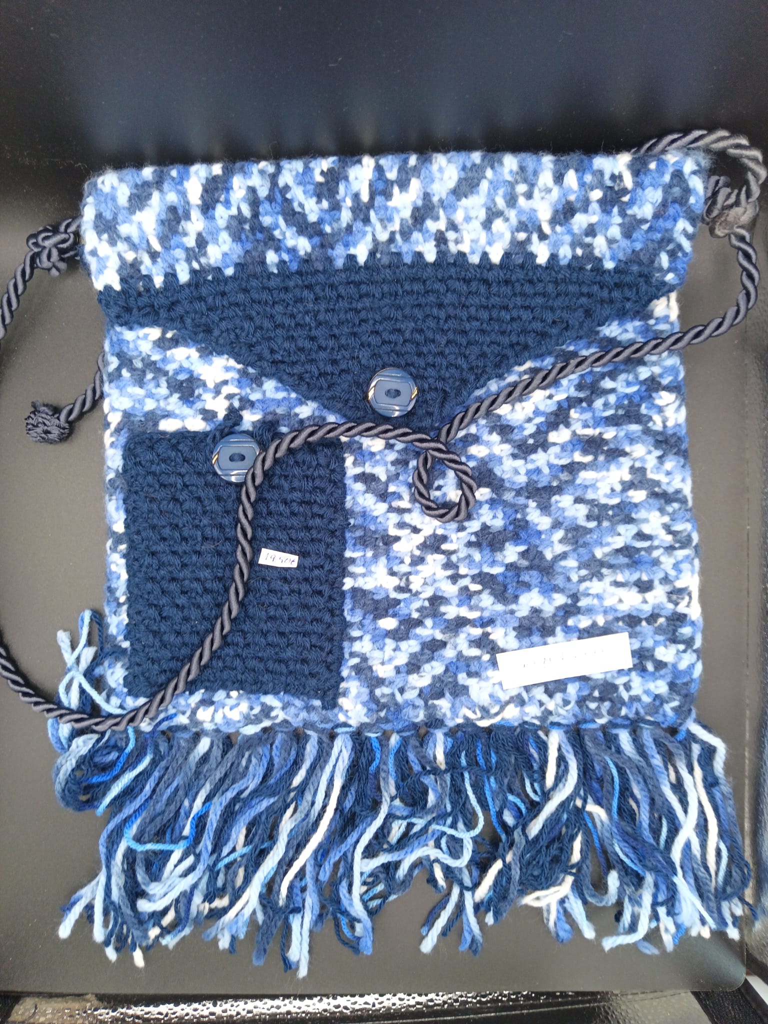 Farben: Marineblau, Hellblau, Königsblau, Weiß Technik: Handgehäkelt Ideal für: Kurze Ausflüge, Festivals oder als modisches Accessoire.